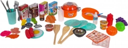 - konstruktivni dijelovi kuhinjice, lonac s poklopcem, tava, šalica, 4× tanjur, pribor za jelo (nož, vilica, žlica), kutlača, lopatice (uključujući 3× veliku), sjeckalica, kliješta, zdjelica, namirnice (bundeva, salata, rak, piletina, 2× jaje na oko, grožđe, riba, hrenovke, kečap, kutijice s keksima, mlijekom i sladoledom, čokoladno mlijeko, instant juha), jelovnik, krpica, pipeta za vodu, dekorativne naljepnice