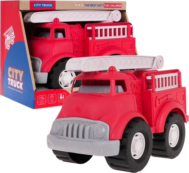Otkrijte eko igračku koja spaja zabavu i odgovornost. Vatrogasno vozilo od bioplastike je čvrsto, šareno i sigurno za male ruke. Zahvaljujući velikim pokretnim kotačima vožnja je glatka, a ljestve se lako podizu, spuštaju i rotiraju za 360° – idealno za spasilačke akcije u dječjem svijetu mašte.