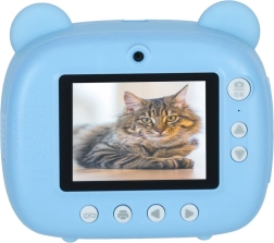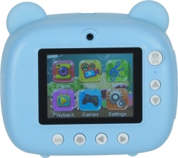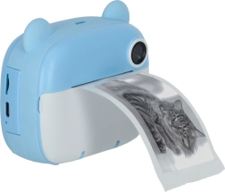 Preslatki dječji instantni fotoaparat u dizajnu plavog mede koji zahvaljujući integriranom termalnom pisaču odmah ispisuje crno-bijele fotografije. Ima dva objektiva, snima video 1080p, a u pakiranju dobivate karticu 32 GB, 3 role papira, 6 flomastera i vrpcu za oko vrata.