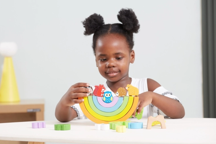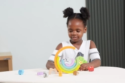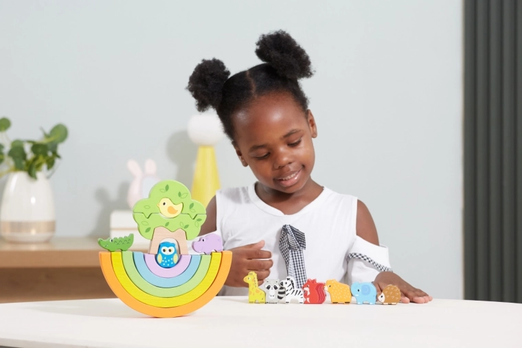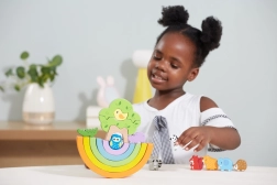 Ova Montessori građevna igra spaja radost slaganja duge s maštovitom igrom s preslatkim životinjicama. Djeca mogu slagati obojene lukove, stvarati tunele i mostove, graditi skrovišta za životinjice te istraživati kako funkcionira balansiranje i stabilnost. Igra prirodno razvija finu motoriku, osjetilnu percepciju i kreativnost.