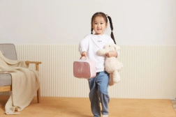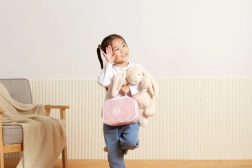 Ružičasta tekstilna torbica PolarB drži sve dodatke uredno na okupu i olakšava prenošenje na put, k bakama i djedovima ili u posjete.