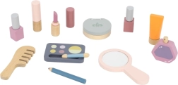 Ogledalo, paleta sjenila, lakovi, ruževi, parfem i češalj izrađeni su od drva i služe kao imitacija kozmetike – idealno za sigurno i maštovito „šminkanje“.