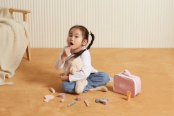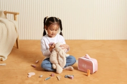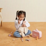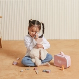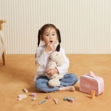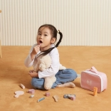 Priredite maloj vizažistici vlastiti kutak ljepote. Stilizirana tekstilna torbica čuva sve drvene „kozmetičke“ dodatke na jednom mjestu i omogućuje da ih ponese bilo kamo. Igra potiče finu motoriku, maštu i razvoj socijalnih vještina kroz igru uloga.