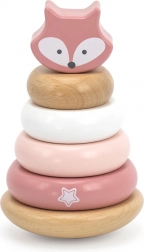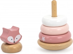 Privlačni pastelni tonovi i gornji dio s lisicom motiviraju djecu na slaganje te učenje boja i veličina.
