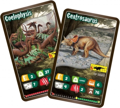 TOP TRUMPS – Dinosauri donosi napeto uspoređivanje parametara legendarnih prapovijesnih stvorenja. Svaka karta sadrži privlačnu ilustraciju i ključne statistike, zahvaljujući kojima igrači mogu pametno birati kategorije i nadmudriti protivnike. Kompaktan tuck box olakšava prenošenje, pa igru možete ponijeti bilo kamo – na izlet, praznike ili u posjet.