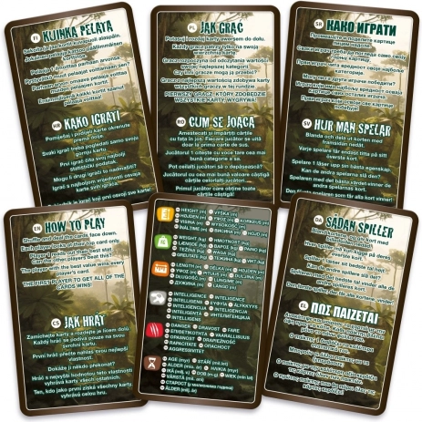 Svaka karta donosi detaljnu ilustraciju i pregledne statistike (npr. duljina, masa, brzina), što igru čini zabavnim uspoređivanjem i poučnim iskustvom.