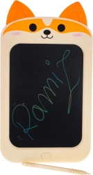 Šareni tablet s lisicom za djecu od 3 godine. Bit će idealan kao bilježnica ili podloga za crtanje. Lagan je, praktičan i ima dijagonalu zaslona od 8,5 inča. Na zaslonu tableta nastaju šareni crteži. U donjem dijelu tableta nalazi se gumb kojim se nacrtana slika može odmah izbrisati. Ovaj gumb ne radi ako je na stražnjoj strani aktivirana blokada. Ona štiti tablet od slučajnog brisanja bilješki, npr. kada je tablet u ruksaku. Na stražnjoj strani tableta nalazi se prostor za olovku (stylus), koja je dio seta, a tu su i utori s oblicima slova abecede. Igračka se napaja baterijama CR2025, koje su uključene u set. .. Funkcije tableta: . - za djecu od 3 godine, .- lagan, praktičan, .- izrađen od najboljih materijala, .- možete stvarati šarene crteže zahvaljujući različitim zonama boja na zaslonu, .- dijagonala zaslona 8'5", .- ne emitira svjetlo, nema nepovoljan utjecaj na dječje oči, .- zamjenjuje blokove i bilježnice, čime čuva okoliš, .- crtanje ne prlja za razliku od olovaka i krede, .- ima gumb za trenutno brisanje bilješki, .- ima blokadu protiv nenamjernog brisanja crteža, .- izgleda odlično, - dio pakiranja je i stylus. . |
