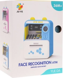 Interaktivni dječji bankomat – kasica s imitacijom prepoznavanja lica uči djecu računanju, vrijednosti novca i štednji. Ima sigurne zaobljene rubove, digitalni zaslon, zvučne efekte i glas na engleskom. Aktivira se umetanje imitacije platne kartice i nudi polog, isplatu, provjeru stanja i promjenu PIN-a. Za djecu od 3 godine.
