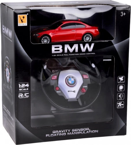 Licencirani RC automobil BMW u mjerilu 1:24 oduševit će vjernim detaljima karoserije, stražnjim pogonom i svjetlima koja svijetle pri vožnji naprijed i unatrag. U sklopu je volan s funkcijama START/STOP, DEMO i MUSIC, koji simulira stvarno upravljanje uključujući zvukove žmigavaca pri okretanju. Zahvaljujući vakuumskim čepovima čvrsto stoji na stolu, a izbor prijenosa (N, D1, D2, R) vožnji daje još realističniju dimenziju.