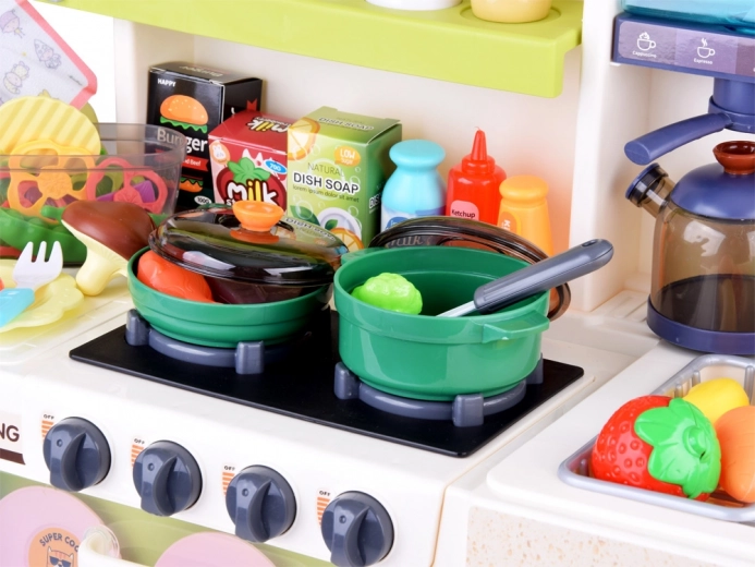 Bogata oprema sa 101 elementom uključuje posuđe, pribor za jelo, kuhinjski pribor, namirnice i malu dječju “elektroniku” (npr. toster s tostovima). Djeca mogu isprobati kuhanje, posluživanje i pranje posuđa, dok uče organizaciju posla, suradnju i zdrave navike.