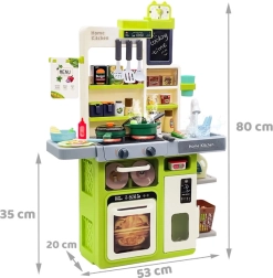 Zabava s ovom kuhinjom je iznimna zahvaljujući funkcijama kao što su pozadinski osvijetljeni plamenici, zvukovi kuhanja i efekt pare koja se diže iz lonaca, što imitira pravo kuhanje. Djeca mogu i „prati” posuđe koristeći slavinu, što igri daje još veću autentičnost.