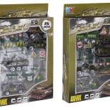 Vojni set nudi sjajnu zabavu s vozilima veličine 7 cm. Set uključuje ne samo 4 metalna modela vozila, već i razne dodatke kao što su znakovi, barijere, čunjevi, bačve i drugo za realistično igranje.