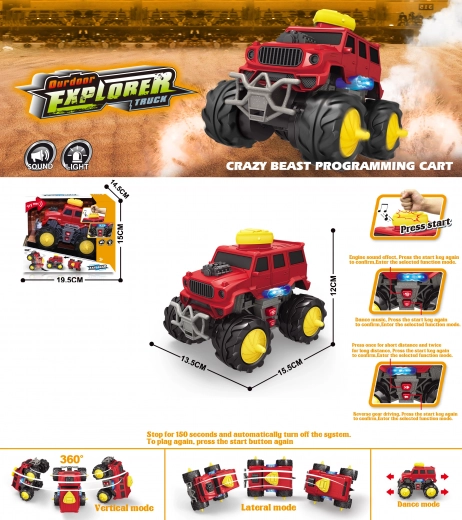 Uživajte u akcijskoj vožnji kod kuće i na putu. Kompaktne dimenzije 15,5 × 13,5 × 12 cm te kombinacija svjetla, zvuka i pokreta čine ovo terensko vozilo atraktivnim modelom za svakodnevnu igru.