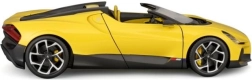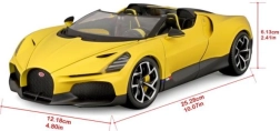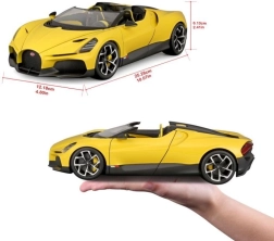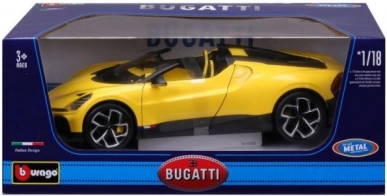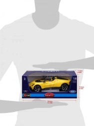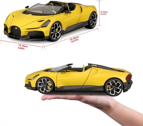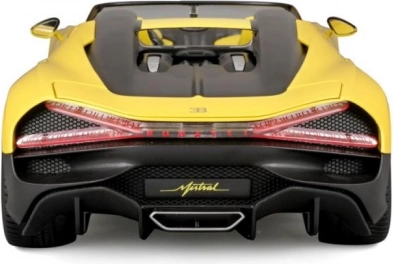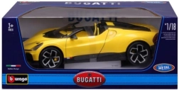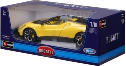 Ekskluzivni kolekcionarski model u mjerilu 1:18 vjerno prikazuje ikonski roadster BUGATTI Mistral u atraktivnoj žutoj boji s crnim akcentima. Precizna izrada, pomični dijelovi i detaljna unutrašnjost oduševit će ljubitelje supersportskih automobila i zahtjevne kolekcionare. Metalna karoserija s plastičnim dodacima jamči izdržljivost i realističan izgled, idealno za izlaganje ili kao stiliziran poklon.