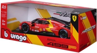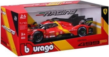 Ikonični prototip FERRARI 499P u vrhunskoj izvedbi brenda BBurago donosi realistično oblikovanje koje naglašava trkaći DNK vozila: izražene linije, stražnje krilo, usis i precizne replike sponzorskih logotipa. Metalne dijelove dopunjuju plastični detalji za maksimalnu vjernost originalu.