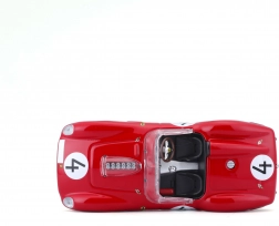 Otkrijte legendu autosporta u preciznoj izvedbi. Ovaj licencirani model FERRARI 250 TESTA ROSSA u mjerilu 1:43 donosi realistične detalje poput žičanih naplataka, bočnih ispupa, prozirnog vjetrobrana i trkaćih startnih brojeva. Savršen za vitrinu ili kao poklon ljubiteljima klasičnih trkaćih automobila.