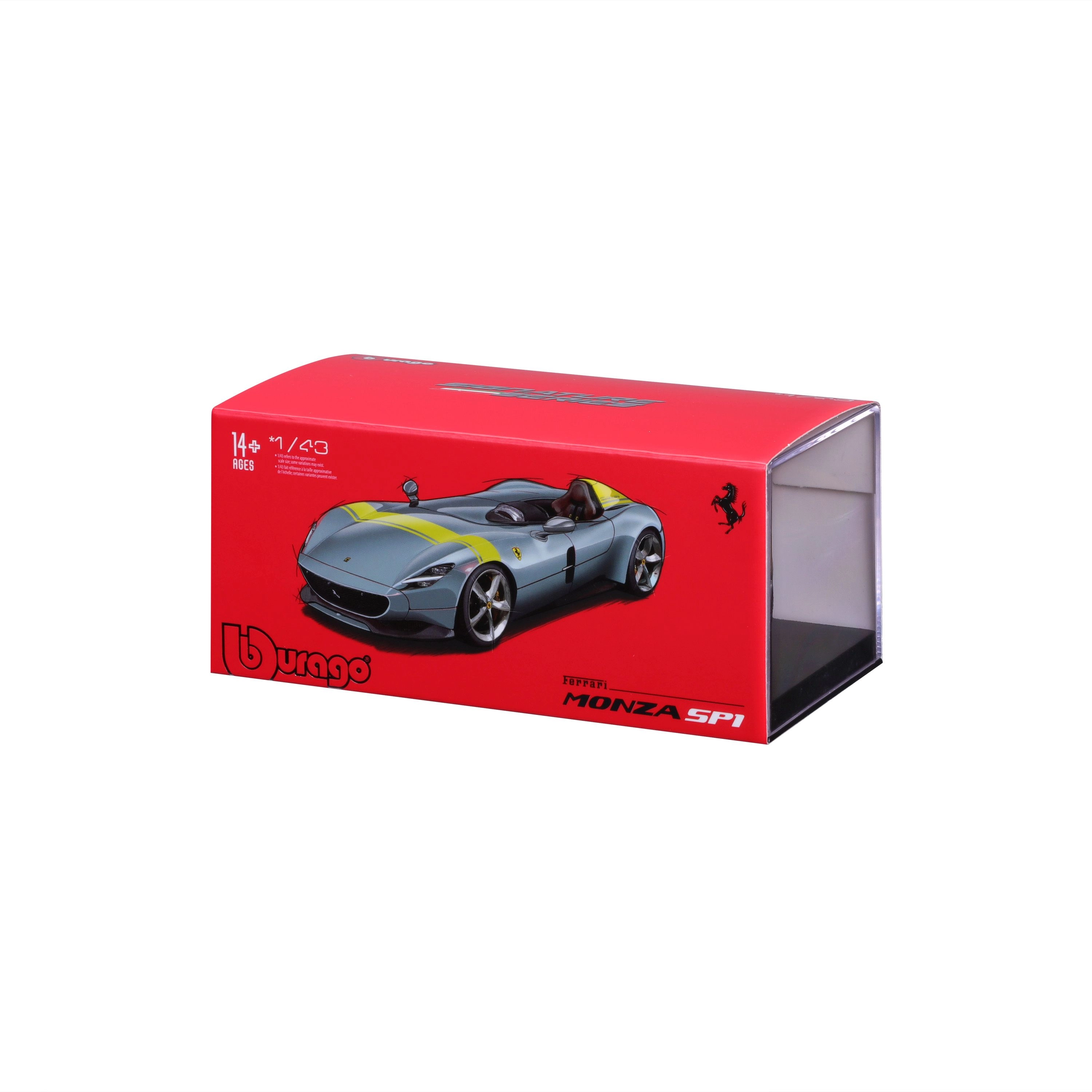 Ovaj detaljno izrađen metalni model BBURAGO u mjerilu 1:43 vjerno prikazuje ikonični jednosjed Ferrari Monza SP1. Srebrna metalizirana boja sa žutim akcentima, realistični naplatci, kočione čeljusti i precizno oblikovana ogledala naglašavaju premium izgled koji će se istaknuti na svakoj polici.