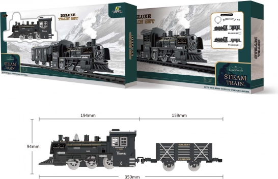 Ovaj detaljno izrađen vlakovski set donosi autentičnu atmosferu parnih lokomotiva. Zahvaljujući dimnim efektima iz dimnjaka te svjetlosnim i zvučnim efektima, vožnja djeluje iznimno realistično. Tračnice dimenzija 75 × 75 cm idealne su za igru na podu i lako se sastavljaju.
