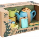 Set uključuje sve potrebno za mali čajni servis: od čajnika s poklopcem do tanjurića, šalica i žličica. Zahvaljujući laganom i sigurnom materijalu, prikladan je za djecu od 3 godine i jednostavan za održavanje čistim.