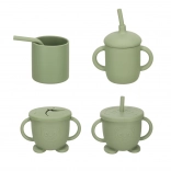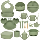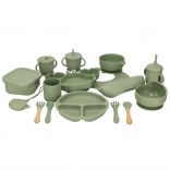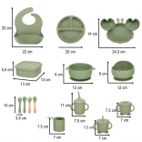 Ovaj 19-dijelni set zelenog silikonskog posuđa dizajniran je s pažnjom na sigurnost i udobnost vaše djece. Zahvaljujući izdržljivom silikonu bez štetnih tvari, ovi proizvodi su idealni za nježna dječja usta. Boja i dizajn čine svaki obrok zabavnim i potiču razvoj manualnih vještina.