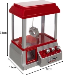 Upravljanje i MEHANIZAM hvatanja bombona - Stroj za hvatanje bombonafunkcionira kao pravi automat.Na prednjoj strani igračkenalaze setri joysticka od izdržljivog PS-a, kojiomogućuju potpuno upravljanje kandžom.Prvi joystick pomiče mehanizam naprijed i natrag, središnji desno i lijevo, a treći spušta i podiže čeličnu kandžu,pričvršćenu za portal robusnim lančićem s okom. Cijeli proces hvatanja bombona jeiznimno gladak i realističan, a radost hvatanja omiljenih poslastica dodatno pojačava zabavna napetost.Nakon što uhvatite bombonbombon se spretno ubacuje ucrveno osvijetljeni otvor, što cijeloj igri daje dodatnu dozu zabave.