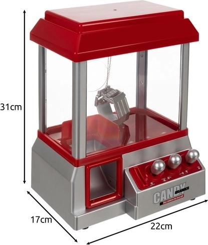 - Upravljanje i MEHANIZAM hvatanja bombona - Stroj za hvatanje bombona funkcionira kao pravi automat. Na prednjoj strani igračke nalaze se tri joysticka od izdržljivog PS-a, koji omogućuju potpuno upravljanje kandžom. Prvi joystick pomiče mehanizam naprijed i natrag, središnji desno i lijevo, a treći spušta i podiže čeličnu kandžu, pričvršćenu za portal robusnim lančićem s okom. Cijeli proces hvatanja bombona je iznimno gladak i realističan, a radost hvatanja omiljenih poslastica dodatno pojačava zabavna napetost. Nakon što uhvatite bombon bombon se spretno ubacuje u crveno osvijetljeni otvor, što cijeloj igri daje dodatnu dozu zabave. .