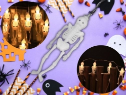 Stilska svjetlosna dekoracija koja u trenu pretvara interijer i zaštićeni eksterijer u tajanstveno halloween okruženje. Svaki od 10 minijaturnih kostura ima samostalnu LED diodu, zahvaljujući čemu je svjetlo ravnomjerno raspoređeno cijelom dužinom lanca. Toplo bijela boja stvara ugodnu, a ipak jezovitu svjetlost.