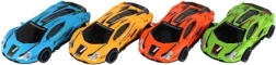 Svaki autić ima kompaktne dimenzije 16 × 8 × 4 cm koje odlično leže u ruci. Set donosi četiri atraktivne boje (plava, žuta, narančasta, zelena), pa djeca mogu organizirati vlastite utrke i kolekciju modela.