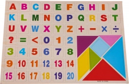 - Obostrana ploča, suhi flomaster, kreda, spužvica, 54 kom magnetâ sa slovima i brojevima, 7 kom geometrijskih oblika, slikovni priručnik