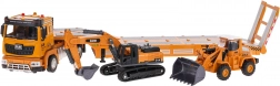 Set građevinskih vozila s odvojivom prikolicom idealna je igračka za svakog malog graditelja. Realistični izgled i funkcionalnost vozila doprinose razvoju dječje mašte i motorike.