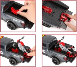 Igračka pickup s odvojivim motociklom idealan je izbor za male ljubitelje motorizma. Nudi realistične zvukove i svjetlosne efekte koji obogaćuju igru.