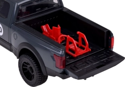 Igračka pickup osmišljena je kako bi djeci pružila prostor za kreativnu igru. Na stražnjem nosaču nalazi se odvojivi motocikl koji povećava interaktivnost igračke. Na krovu vozila nalaze se tri gumba koja aktiviraju svjetleće rotirke za realistične doživljaje. Igračka potiče dječju kreativnost, fine motoričke vještine i maštu.