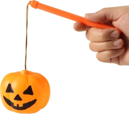 Stvorite kod kuće i na zabavi pravu halloweensku atmosferu sa svjetlećom bundevom s ručkom. Plastična bundeva veličine cca 10 cm lako se upravlja pomoću prekidača i spremna je za uporabu, jer već sadrži 3× baterije AG13/LR44. Idealan ukras i igračka samo sa svjetlosnim efektom za djecu od 3 godine.