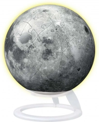 Ravensburger 3D Svjetleća slagalica Mjesec odlično spaja zabavu i dekor. Ova slagalica sadrži 73 dijela koji se zahvaljujući posebnoj EasyClick tehnologiji lako i precizno povezuju. Nakon sastavljanja stvaraju čvrstu i stabilnu kuglu.