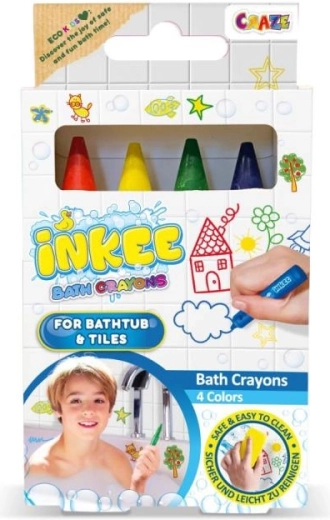 Otkrijte zabavu s šarenim pastelama INKEE tijekom kupanja! Četiri živopisne boje oživjet će svaku kupaonicu i potaknuti kreativnost vašeg djeteta.