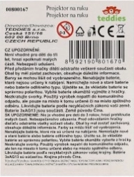 Projektor dolazi s baterijama 3× AG13 i 2 projekcijska diska, pa zabava počinje odmah nakon raspakiravanja. Možete birati između tri varijante boja (plava, ružičasta, tirkizna). Pakiranje na kartici savršeno je kao mali poklon.