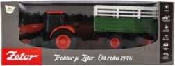 Crveni traktor u ZETOR dizajnu sa zelenom prikolicom lako se odvaja za razne poslove na farmi i još zabavniju igru.