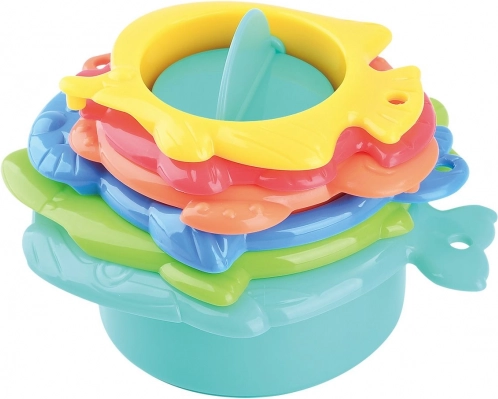 Uljepšajte djeci kupanje uz sadu 6 čašica za kadu od PLAYGO. Najmanja čašica opremljena je vodenim mlincem koji se pri ulijevanju vode okreće i svako kupanje pretvara u zabavnu igru.