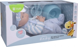 Preslatka beba u plavom kombinezonu veličine 40 cm razveselit će svako dijete. U pakiranju se nalaze praktični dodaci za igru njegovanja – kahlica, zdjelice s priborom i duda. Idealno za razvoj mašte i njegovateljskih vještina.
