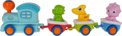 Ova interaktivna željeznička staza s dinosaurima unijet će puno radosti u dječju sobu. Lokomotiva na 2× AA baterije zasvijetli i pokreće melodije, dok garnitura juri po šarenim tračnicama. Svaki od 3 vagona može se jednostavno odvojiti, a figurice dinosaura izvaditi za samostalnu igru.