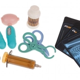 Stetoskop sa zvukom srca, svjetlosni termometar, injekcija, škare, pinceta, bočica, kapaljka, stomatološki instrumenti i drugi dodaci za kreativnu igru.
