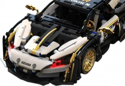 Isprobajte svoje vještine s ovom konstrukcijskom setom sportskog automobila koja sadrži 1242 kockice za vas ili vašu djecu od 8 godina naviše. Model je izrađen od visokokvalitetne ABS plastike i vjerno replicira vozilo s realističnim zlatnim elementima, poput sjajnih naplataka.