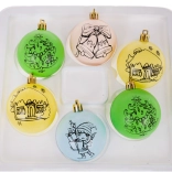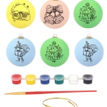 Ovaj set sadrži 6 ukrasa za oslikavanje, prikladnih za djecu od 3 godine. Svaki je ukras prekriven slojem s božićnim motivom koji možete obojiti prema vlastitoj mašti. Dio seta su i boje s kistom te dodatne vezice za vješanje.