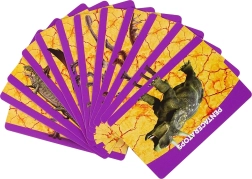 Set uključuje 12 kartica koje predstavljaju različite vrste dinosaura i pružaju informativne saznanja.