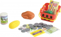 Set sadrži sve potrebno za vođenje imaginarnog dućana, uključujući košaricu s dodacima, igraći novac i platnu karticu. Djeca imaju mogućnost praktičnog računanja izravno na blagajni, što potiče njihove matematičke sposobnosti i kreativnost.