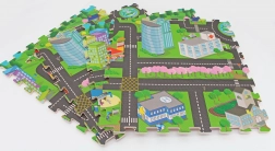 Ovaj pjenasti tepih – puzzle s motivom grada pretvara sobu u razigrano i sigurno okruženje. Zahvaljujući mekoj EVA pjeni ublažava udarce, izolira hladnoću s poda i djeci pruža udobno mjesto za puzanje, sjedenje i prve korake.