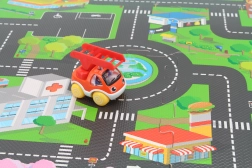 Četiri velika bloka dimenzija 60 × 60 cm lako se slažu u cjelinu 118 × 118 cm. Površinu je moguće jednostavno obrisati ili oprati, pa je održavanje čistoće prava igra. Idealno za svakodnevnu igru kod kuće i u vrtiću.
