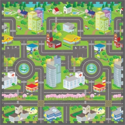 Stvorite djeci vlastiti grad od pjenastog puzzle tepiha dimenzija 118 × 118 cm. Mekana i sigurna površina štiti tijekom igre, neškodljiv EVA materijal u potpunosti je periv i lako se održava. Veliki dijelovi 60 × 60 cm brzo se slažu i pružaju puno zabave već od 10 mjeseci.