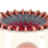 Zahvaljujući 22 igle stroj savladava pletenje kružnih i ravnih pletiva. Kompaktne dimenzije 20 × 17 cm i unutarnji promjer 12,5 cm prikladne su za brze projekte poput kapa, grijača za noge, šalova ili dječjih dodataka. U pakiranju su i 2 klupka pređe, igla i kukica za jednostavno ušivanje i dovršavanje izradaka.
