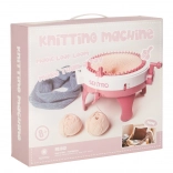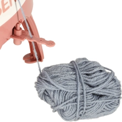 Dio seta su 4 šarena klupka pređe (tamnije siva, svjetlosiva, ružičasta, bež), igle različitih veličina i kukica za lako završavanje i spajanje. Stabilne nožice i vakuumske prianjaljke pomažu držati stroj čvrsto na mjestu tijekom rada.
